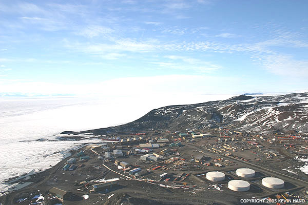 horizon. The small 'town' of McMurdo station resembles the blend of a